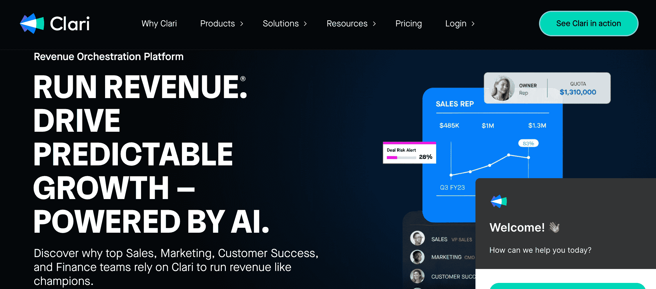 Clari se centra en analizar y predecir los ingresos a través de la recopilación y procesamiento de datos en tiempo real. Con dicho enfoque, la herramienta ayuda a los equipos de revenue operations a mejorar la precisión de las previsiones de ventas y detectar oportunidades de riesgo en el ciclo de ingresos.