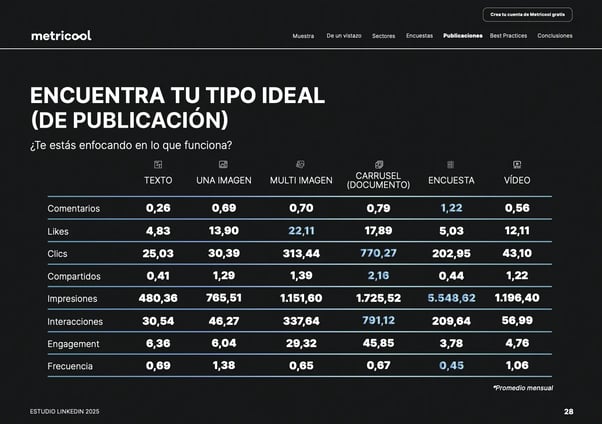 Esto revela una gran oportunidad para quienes deseen diferenciarse en el feed. Pocos los usan, pero LinkedIn los premia: ideal para storytelling, educación y generación de conversación.